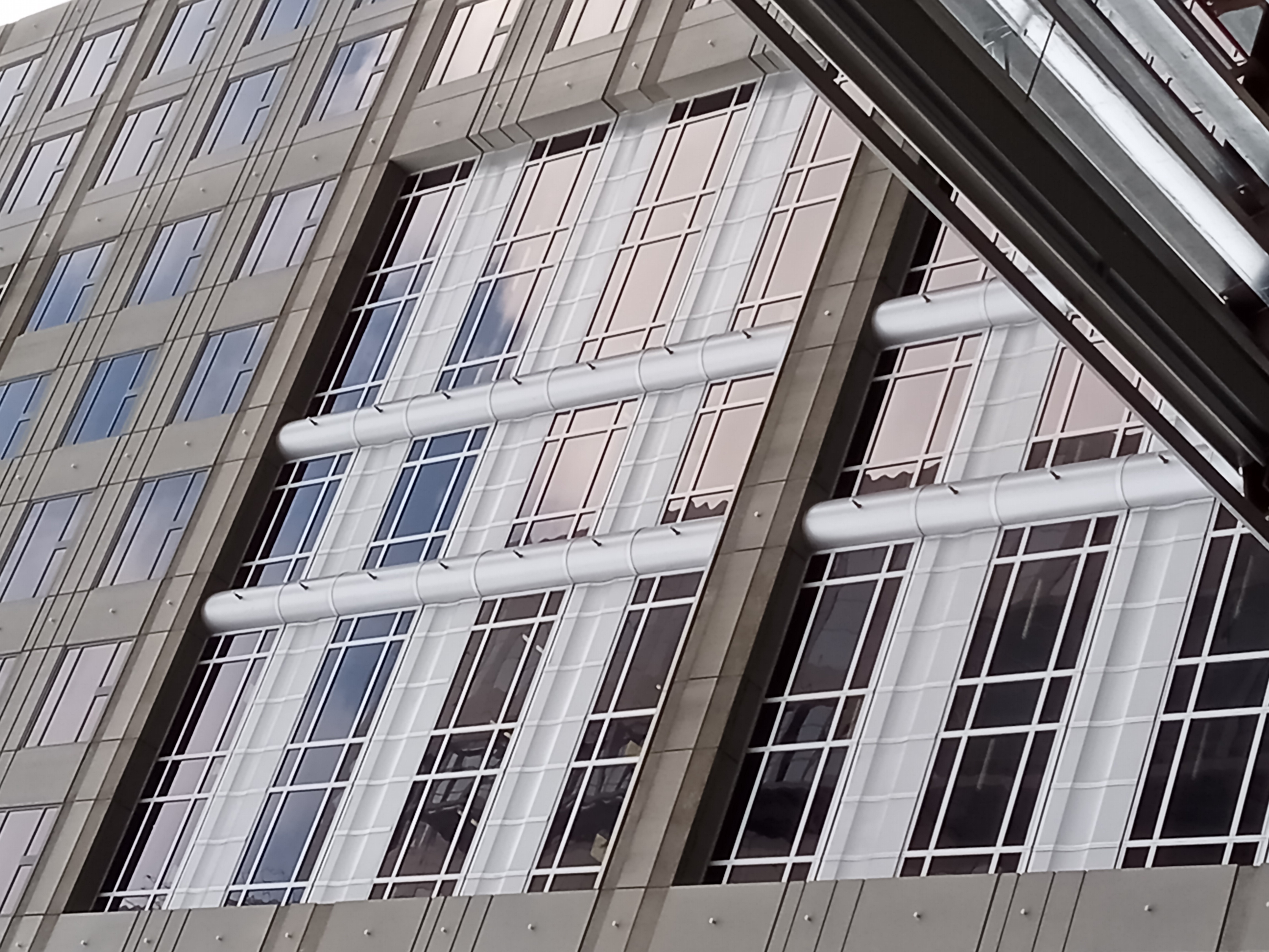 ● Unitized curtain wall, stick curtain wall, feature fins.